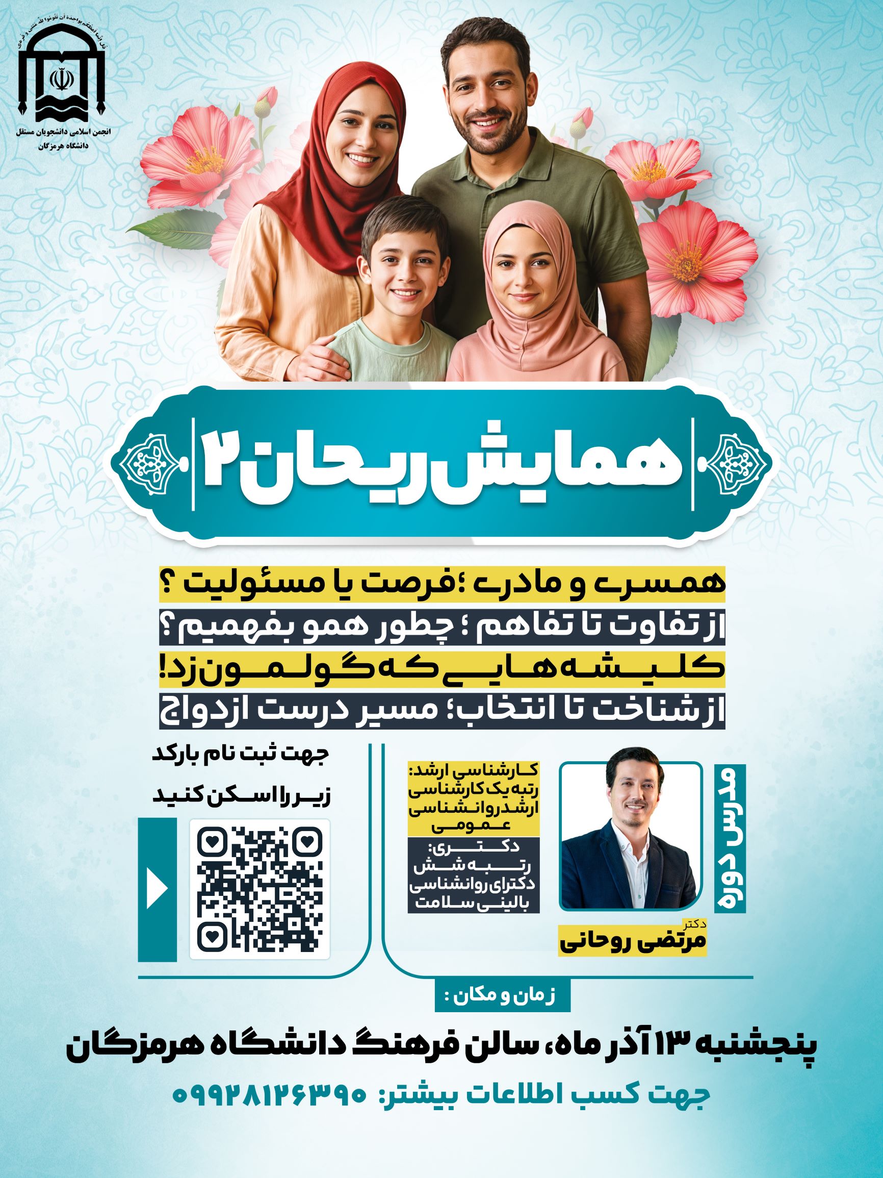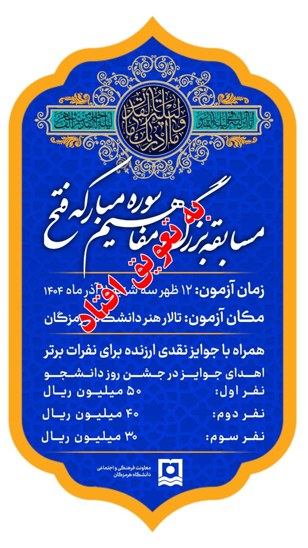 معاونت فرهنگی و اجتماعی دانشگاه هرمزگان برگزار می‌نماید: